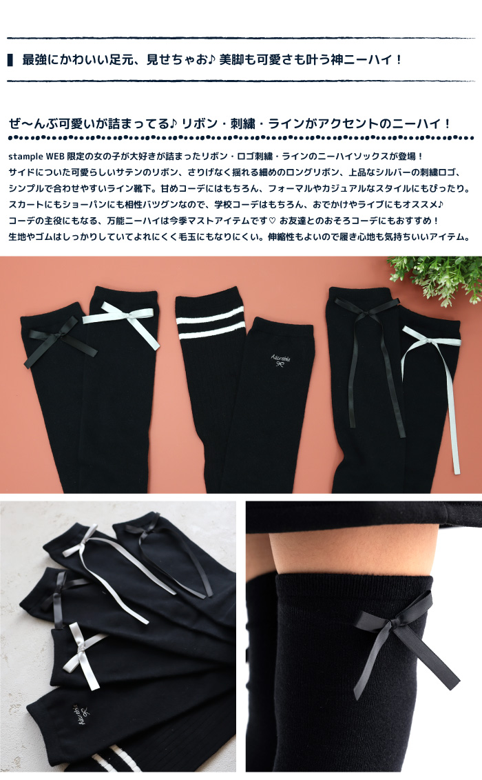 stample WEB限定の女の子が大好きが詰まったリボン・ロゴ刺繍・ラインのニーハイソックスが登場!