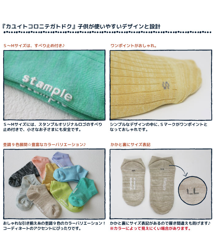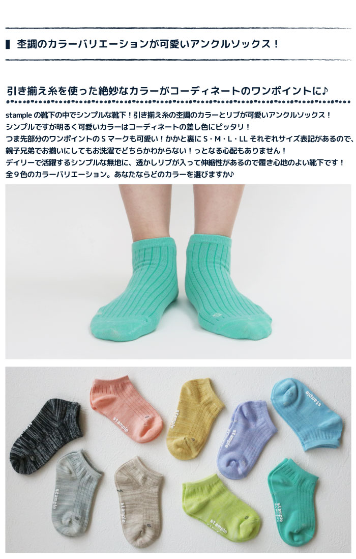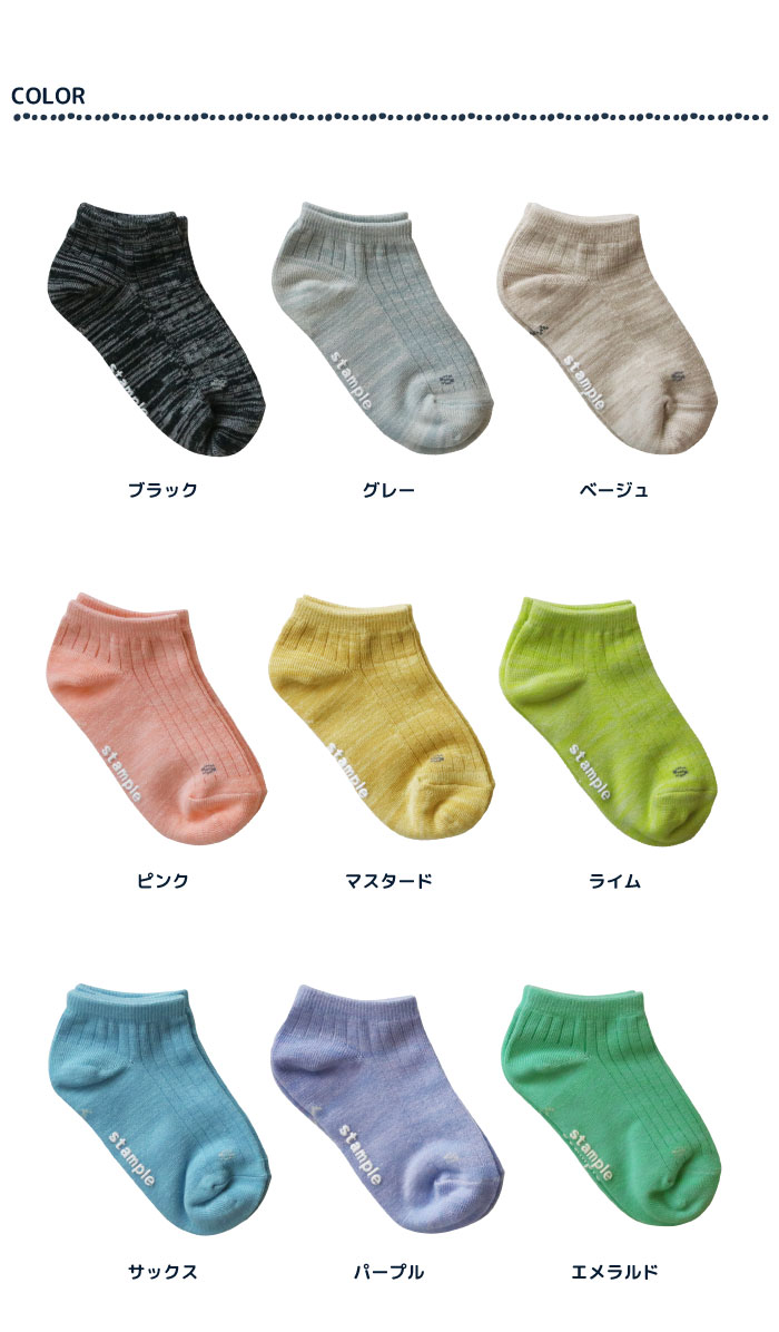 72711 stample スタンプル スタンダード 杢調 アンクルソックス 靴下 キッズ ジュニア レディース 滑り止め パステル