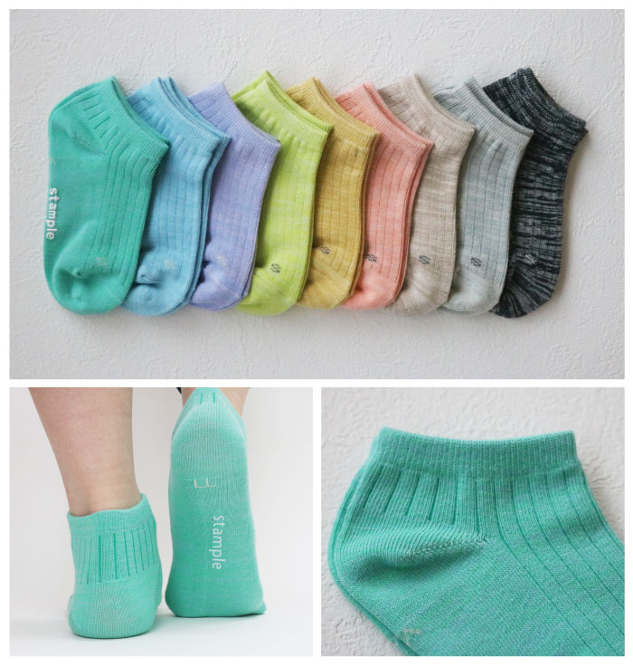 stampleオリジナルデザインで、引き揃え糸の杢調のカラーとリブが可愛いアンクルソックス!