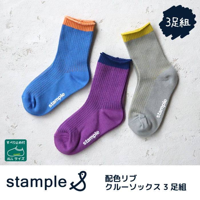 靴下 キッズ stample スタンプル 配色リブクルーソックス 3足組 キッズ 靴下 73289