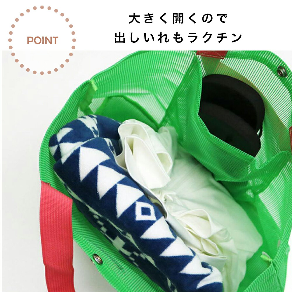 | ITEM : Stample スタンプル オールメッシュトートバッグ プールバッグ レッスンバッグ 毎年大人気のメッシュトートがオールメッシュにリニューアル! 使うたびにHappyになるキャンディカラーが新登場です! ナイロン製&メッシュ素材で、重さは何と約170gとめちゃくちゃ軽い! 底部分もメッシュ素材なので通気性が良く蒸れないから清潔に保てます。 大きく開いて、荷物をどんどん入れることができて使いやすいので、お子さん自身で楽しくお出かけの準備が出来ます! ビーチサンダルもすっぽり入る便利な大きめの前ポケットも付いていて大容量! シンプルなデザインで高学年や大人が使ってもOKなので、長くお使いいただけます。 小学校のプール用バッグに大人気! 入園入学のお祝いやプレゼントにも喜ばれます。 |