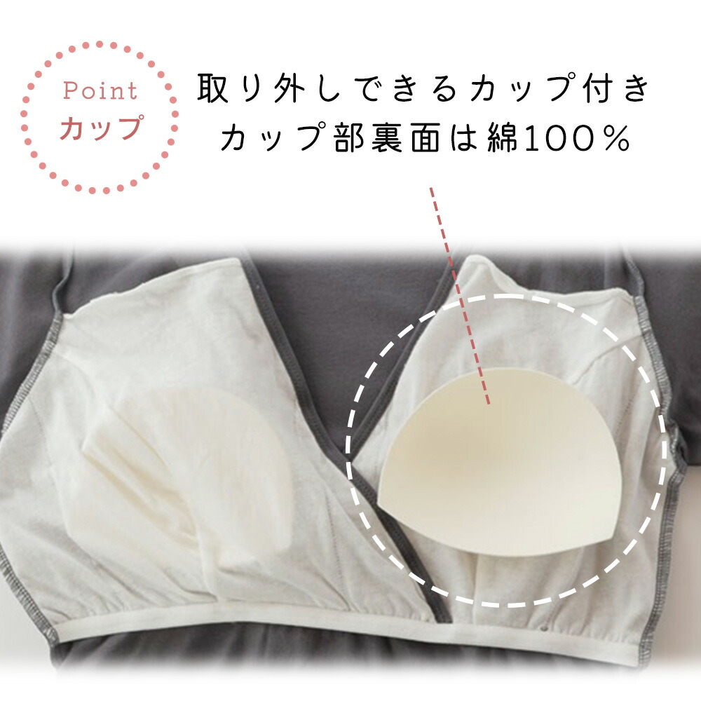 | 妊娠初期〜後期、産前〜産後まで対応 クロスオープン、カップ付き、吸湿発熱加工 |