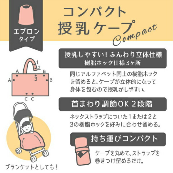 | ITEM : やわらかカットソー授乳ケープ(授乳カバー・エプロンタイプ) 外出先でもスマートにラクラク授乳ができちゃう便利アイテム! くるっとまるめてコンパクトになるので携帯しやすい、エプロン型授乳ケープ(授乳カバー)です。 やわらかなカットソー素材で赤ちゃんにもやさしい。 授乳の際、樹脂ホックで立体的に形作れば、身体をすっぽり包んで安心感もさらにアップします。 授乳後は、ネックストラップを外しくるくる本体に巻きつければ、かさばらずに収納も簡単。 ネックストラップは2段階の長さ調節が可能です。 長方形のシンプルデザインなので、ブランケットとしてベビーカーや外出先でのお昼寝にも使える優秀アイテムです♪ 出産祝いやギフトにもピッタリ! 洗濯機で洗えてお手入れも楽ちんです。 |