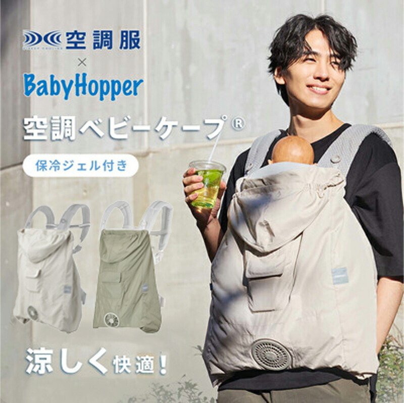 | ITEM :BabyHopper(ベビーホッパー) 保冷ジェル付空調ベビーケープ(R) おでかけを楽しく快適にするアイテムが勢ぞろい! DADWAY(ダッドウェイ)が手がけるベビー用品ブランド、BabyHopper(ベビーホッパー)。 ファン内蔵でずっと涼しい! ベビーケープに付いた小型ファンで、ケープの中に外気を取り入れ、体の表面に大量の風を流すことにより、汗を気化させます。 常に涼しく快適な状態を保つ、着けているほうが涼しいケープです。 メッシュ構造のスーパースペーサー ※1」により、ケープの中全体に外気を行き渡らせます。 紫外線カット、はっ水加工生地を使用で、赤ちゃんの夏のお出かけ対策が一枚で叶います。 【仕組み】 ファンからケープの中に外気が取り込まれます。取り込まれた空気はケープの中を流れ、その過程でかいた汗を気化させます。ケープの中を通った、暖かく湿った空気は赤ちゃんの首元から排出されます。 屋外などエアコンの使用できない環境でも、快適にすごしていただけるようになります。 風力は強弱を選択できます。 ※1 スーパースペーサーは株式会社セフト研究所により開発された技術です。 ※ 電池ボックスに電池を入れておきます。(+、ーに注意してください) ※ 保冷ジェルは冷凍庫で3時間、冷凍庫内に水平に置いて冷やしてください。(8時間を越えて冷凍するとかたくなることがあります。室温でやわらかくなってから使用してください)冷やした保冷ジェルはメッシュポケット内、スペーサーの上に重ねてセットしてください。 【抱っこひもにご使用の場合】 1.ケーブル固定用フラップにケーブルが通っていることを確認します。 2.ショートストラップとロングストラップを図1.2の順番で留めます。 3.固定用フラップを腰ベルトに取り付けます。 4.赤ちゃんの足をケープ内に入れて風漏れを防いでください。図3参照。 5.電池ボックスのH/L/OFFスイッチにてH(強)またはL(弱)でお好みに合わせて調整してください。 【ベビーカーにご使用の場合】 1.電池ボックスをポケットから取り出しておきます。 2.フレームにショートストラップとロングストラップをつなげて取り付けます。 3.バンパーバーの上にスペーサーが来る位置に調整します。 4.シート下端をケープで覆い風漏れを防いでください。 5.電池ボックスを荷物籠に入れ、ケーブルをつなぎます。 6.電池ボックスのH/L/OFFスイッチにてH(強)またはL(弱)でお好みに合わせて調整してください。 ■保冷ジェル■ 【冷やす場合】 冷凍庫で3時間 ● 冷凍庫内に水平に置いて冷やしてください。 ● 8時間を越えて冷凍するとかたくなることがあります。 室温でやわらかくなってから使用してください。 【あたためる場合】※500W以上の電子レンジでは使用できません。 電子レンジで30秒 ● 出力500Wに設定した電子レンジ庫内中央に水平に置いて、加熱してください。 ● 更に温める場合は10秒間ずつ加熱し、温度を確認してください。電子レンジのオートモードは使用しないでください。 |