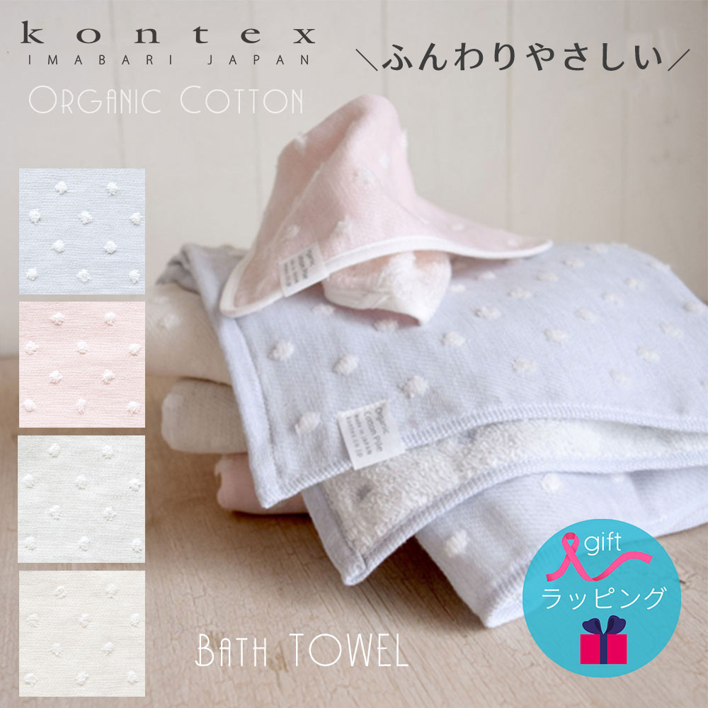 | ITEM : Kontex(コンテックス)バスタオル Kontex(コンテックス)オーガニックバスタオルです。 kontexは、世界から厳選された素材に日本の優れた感性と技を活かした染色、織り、縫製など、全てに安心していただけるタオルづくりに努めています。 オーガニックコットン無撚糸をパイルに使用しています。 非常に優しい肌触りで吸水性にも優れています。 飽きのこない愛らしいドット柄。 吸水性に優れた、厳選された上質なオーガニックコットンを100%使用しています。 バスタオル、湯上りタオルとしてはもちろん、お昼寝時のタオルケットとしても大活躍! 幅広い年齢層のお子様に使っていただける人気アイテムです。 インスタ映えするのでSNSにもピッタリ! 出産祝いやお誕生日祝い、プレゼントやギフトなど贈り物にも喜ばれます♪ |