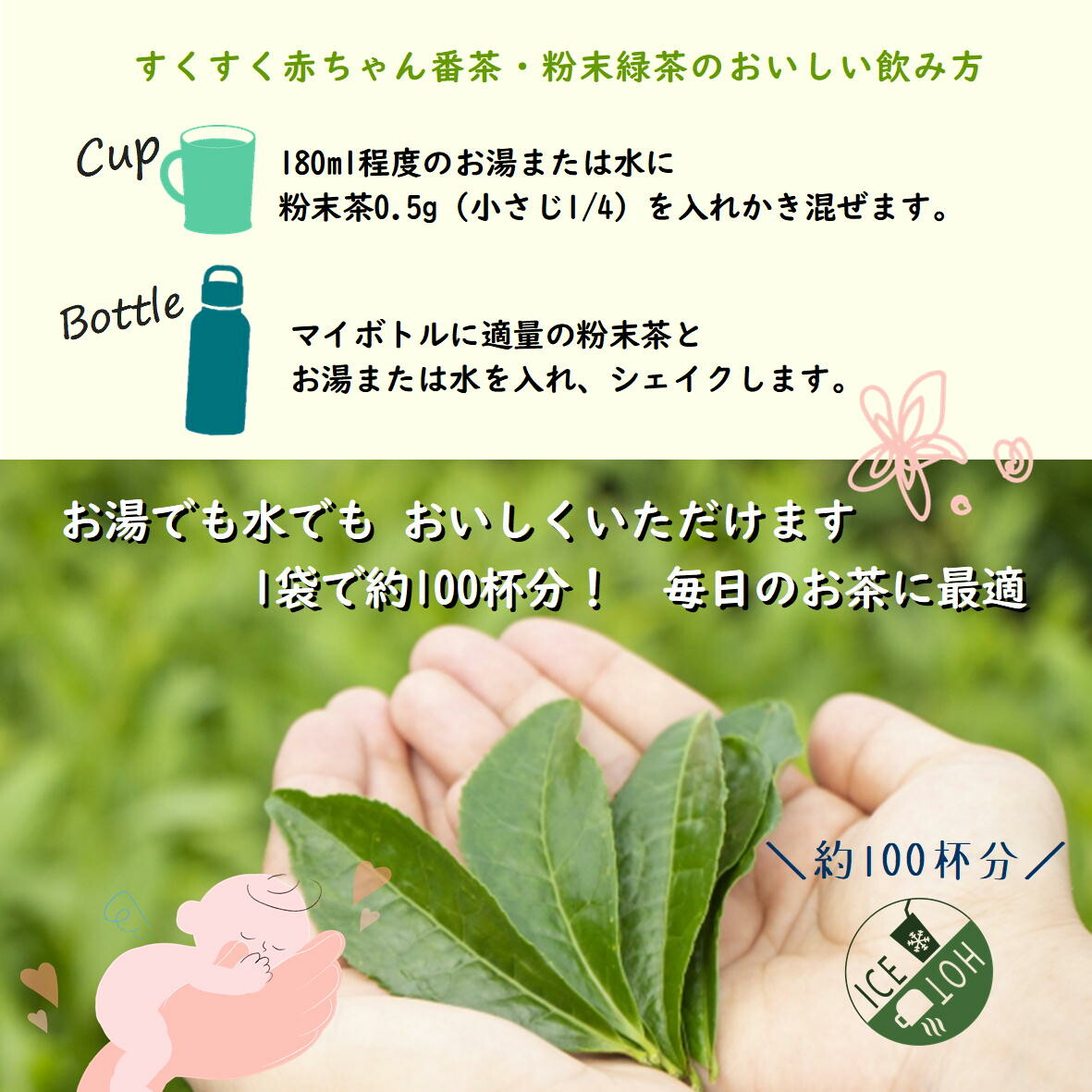 ITEM : 完全無添加 低カフェイン緑茶 すくすく 赤ちゃん番茶 粉末緑茶 |