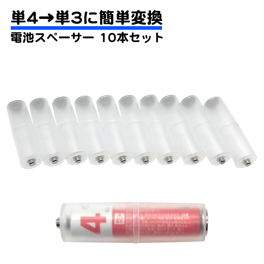 電池 スペーサー 10本セット 単4電池 単3電池 簡単 変換 充電池 対応 アルカリ電池 マンガン電池 単三 単四 防災 予備 サイズ 単3不要 送料無料