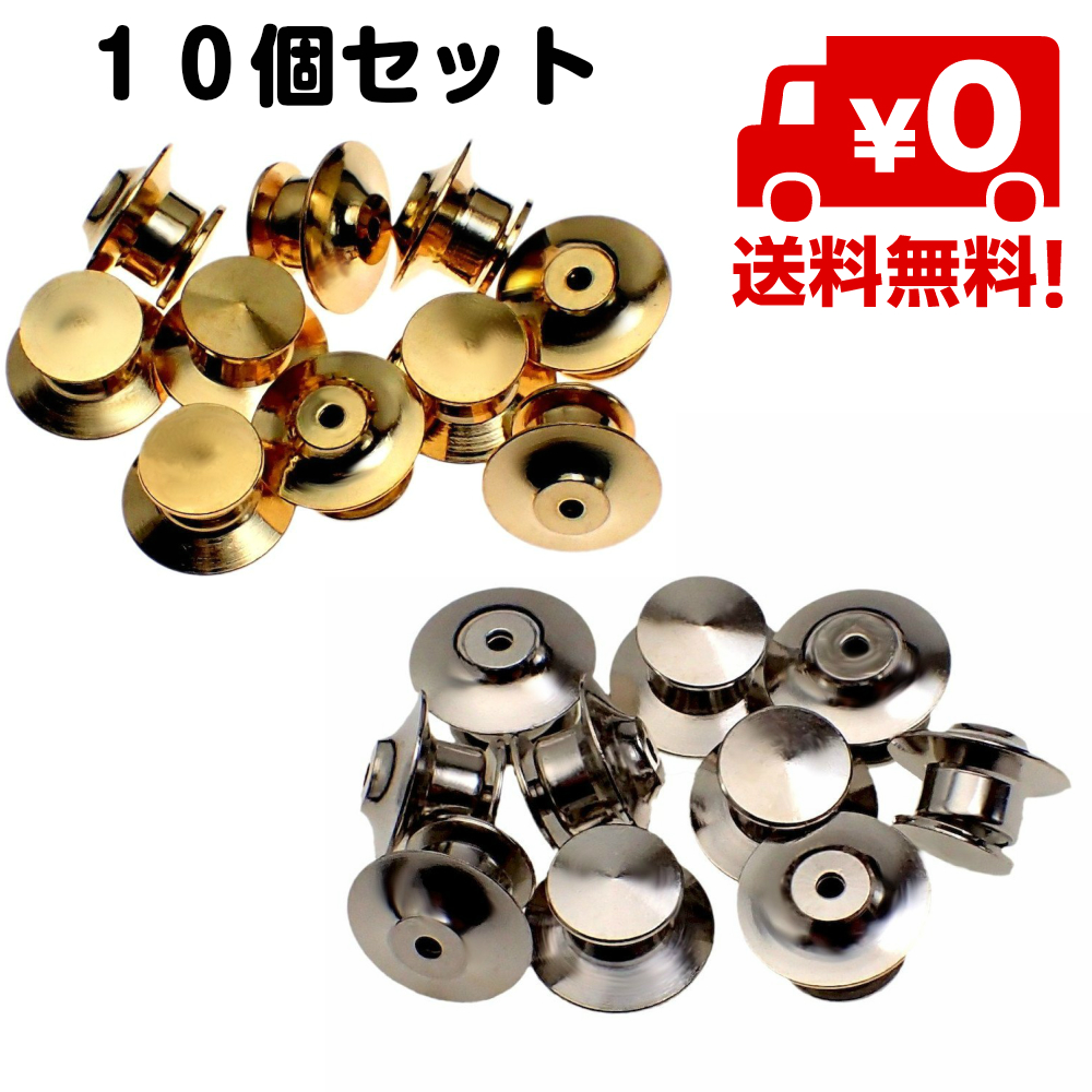 10個セット ピンバッジ キャッチ 留め具 固定 デラックス 薄型 クラッチ 銀色 シルバー 金 ゴールド おしゃれ 送料無料