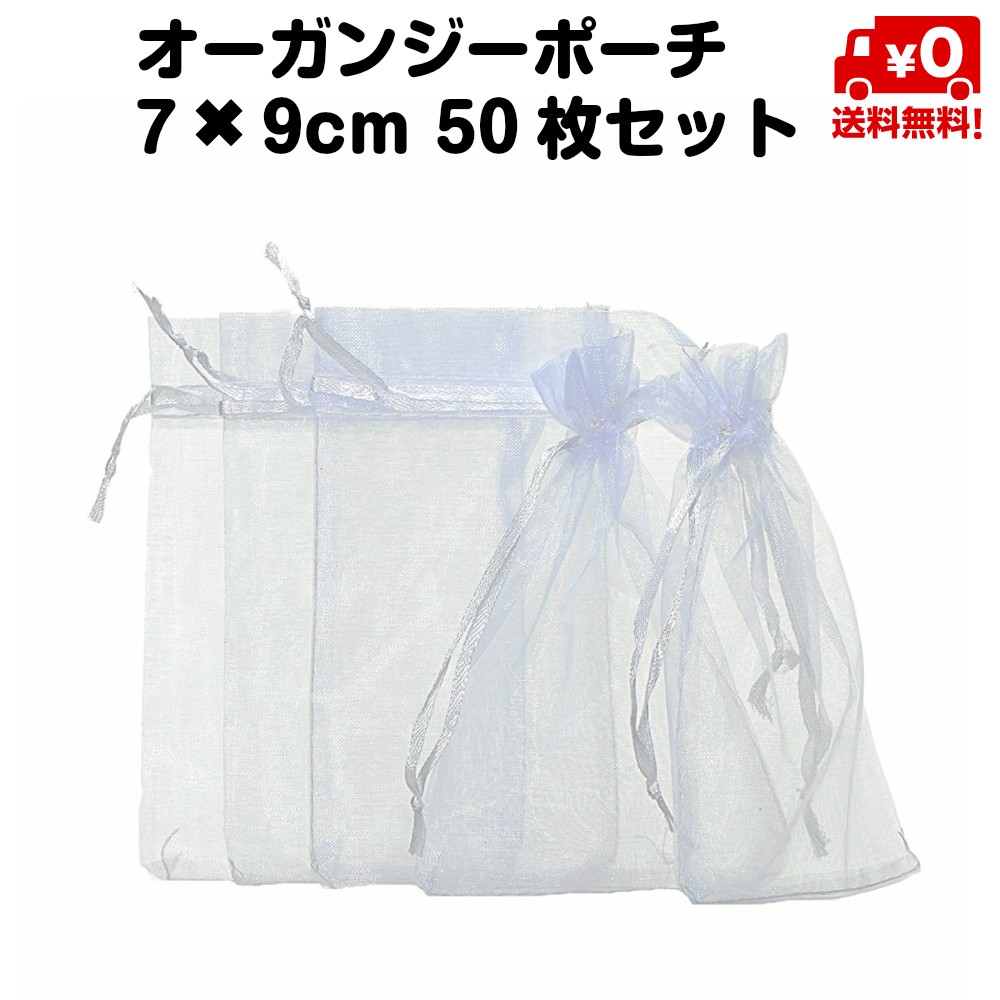 50枚セット オーガンジー ポーチ 巾着 袋 7*9cm 白 無地 送料無料