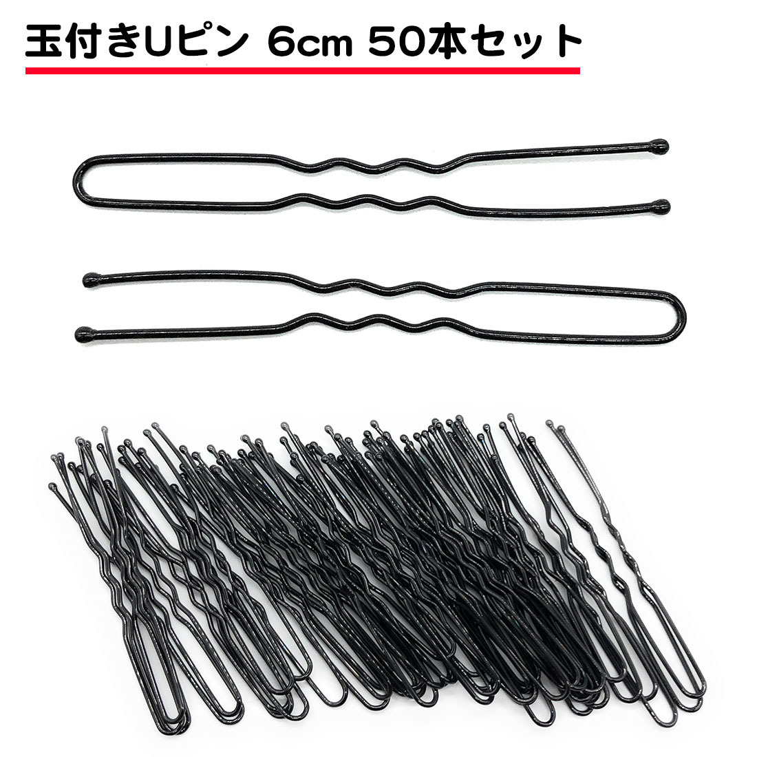 50本セット 玉付き Uピン 60mm 細い 丈夫 錆びない かわいい ヘアアクセサリー 子供 バレエ ヘアピン 黒 6センチ 髪 結婚式 送料無料