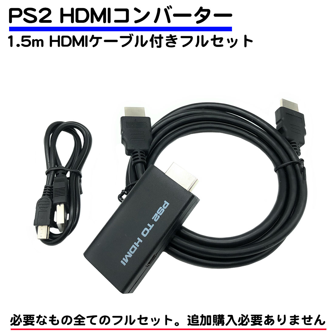 HDMIケーブル 付き フルセット ps2用 コンバーター 互換品 hdmi 変換 usb給電 1.5m hdmiケーブル プレステ2 プレイステーション2 送料無料