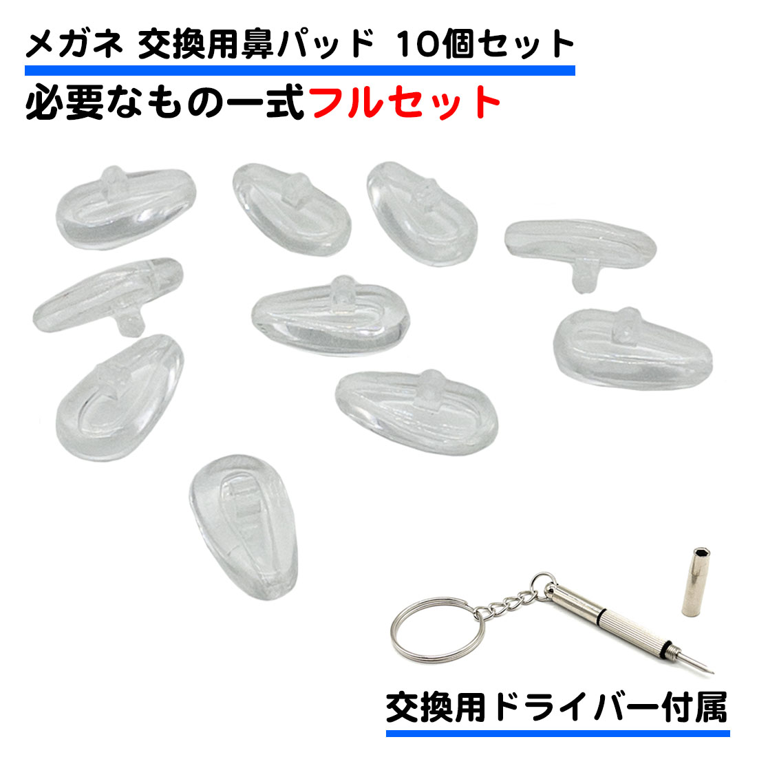 10個セット 交換工具付き 眼鏡 鼻パッド 交換用 シリコン 透明 ネジ式 柔らかい ズレ落ち メガネ 精密ドライバー 痛み軽減 跡がつきにくい ずれ落ち 送料無料