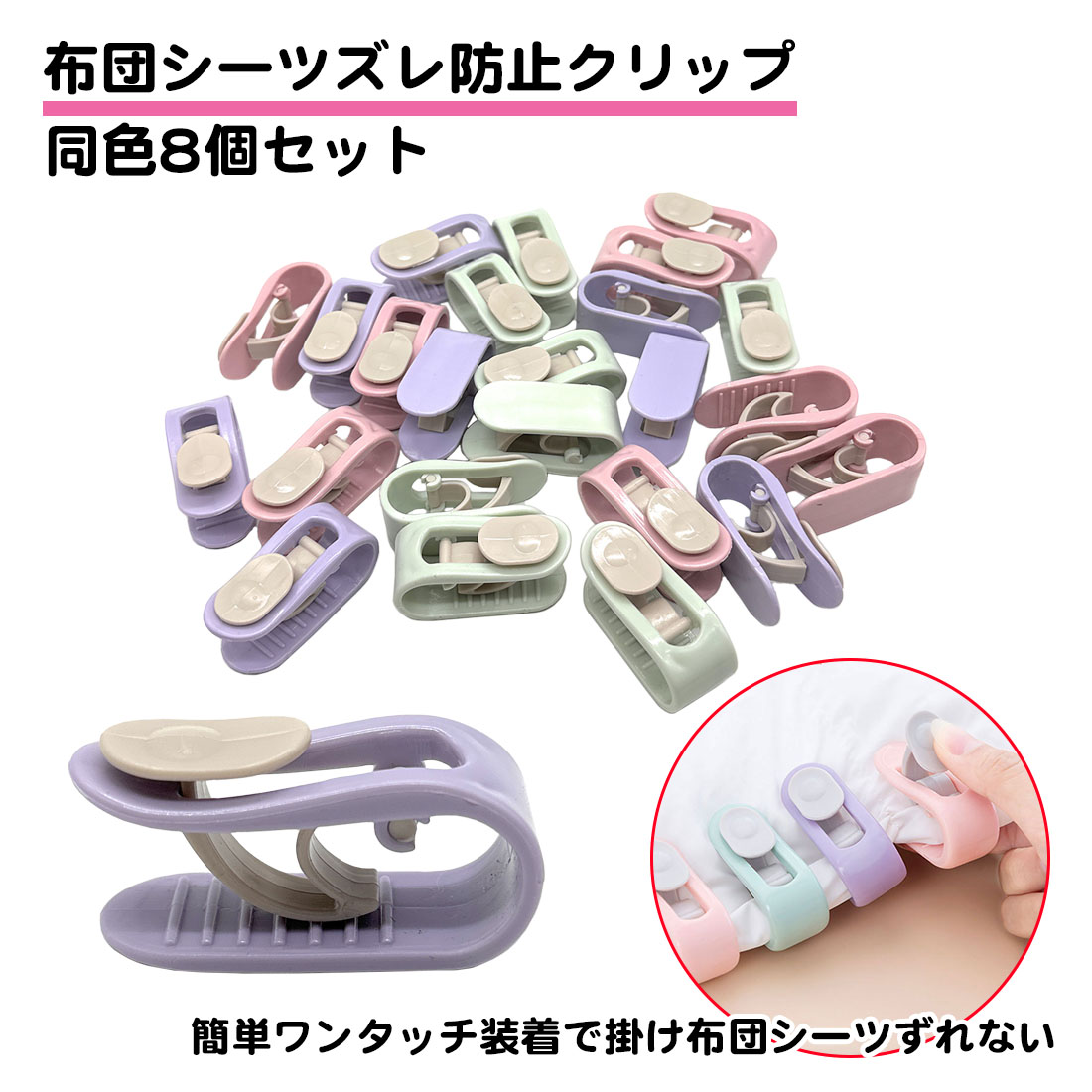 同色8個セット 布団クリップ シーツ ズレ防止 固定 針なし 挟むだけ 簡単 掛け布団 布団止める シーツクリップ キルトクリップ 布団 クリップ 固定器