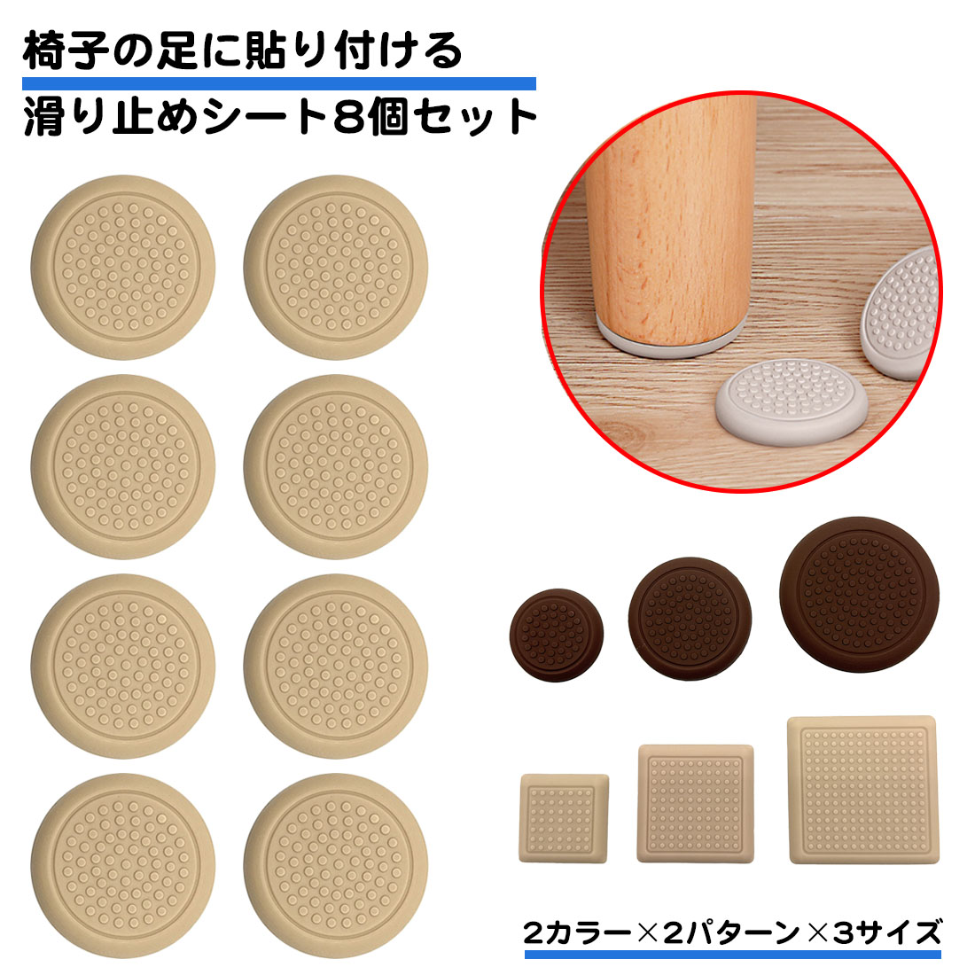 8個セット ソファー 滑り止め シート 角形 丸型 強力 動かない 目立たない 傷防止 床保護 両面テープ付き 滑り止めマット 足 脚 ストッパー ソファ フローリング