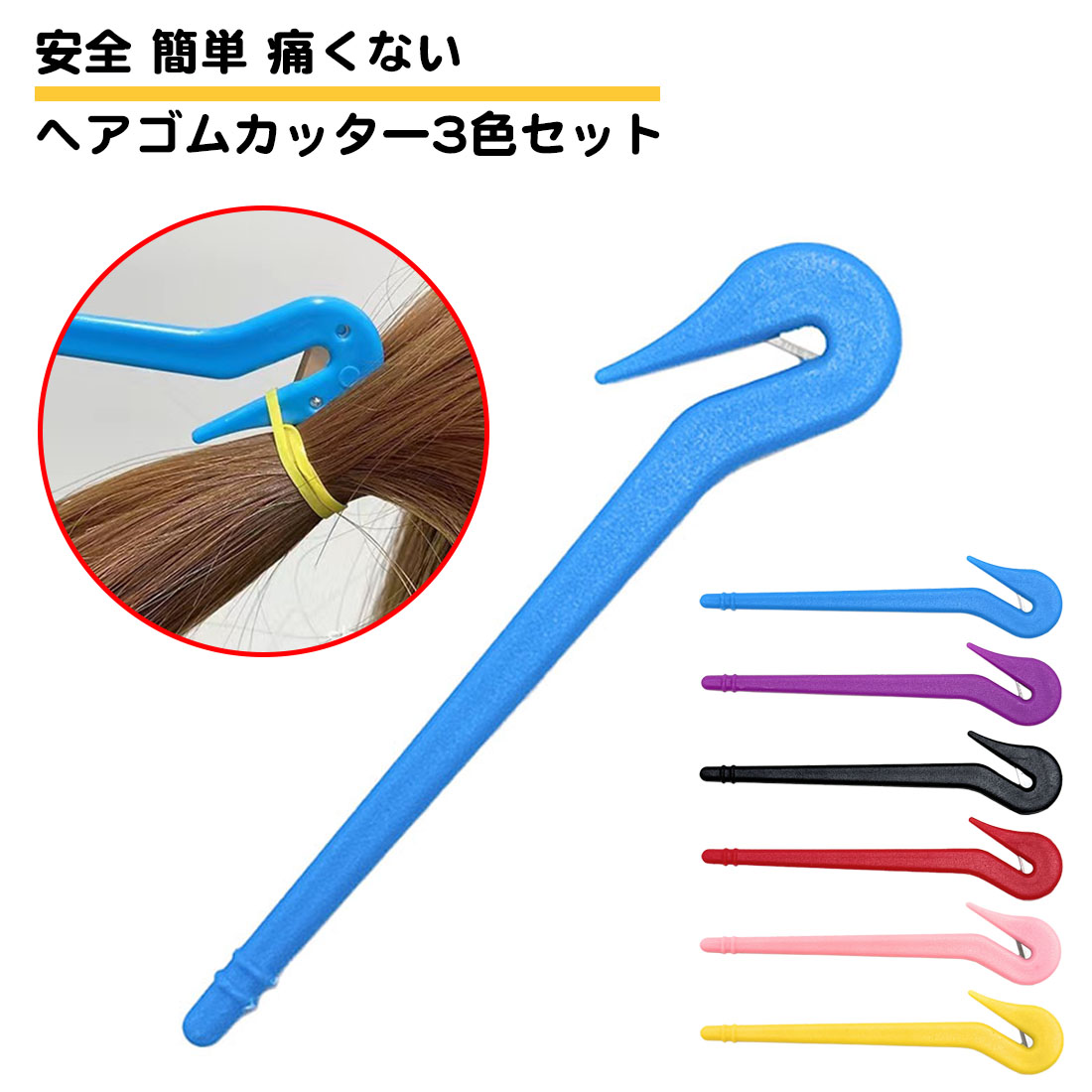 3色セット ヘアゴムカッター 簡単 ワンタッチ 痛くない 子供 女の子 ヘアゴム からまない カッター 幼稚園 小学校 中学校 高校生 くせ毛 輪ゴムカッター