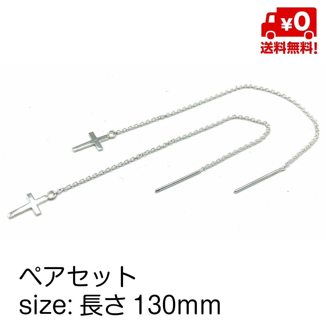 シルバー925 ペア ピアス シンプル おしゃれ メンズ レディース チェーンピアス クロス 十字架 スターリングシルバー silver925 18G 送料無料