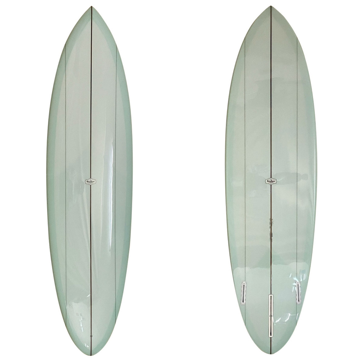 アウトラインを調整したラウンドピンテールは掘れた波でも安定したダウンザラインが可能となり、