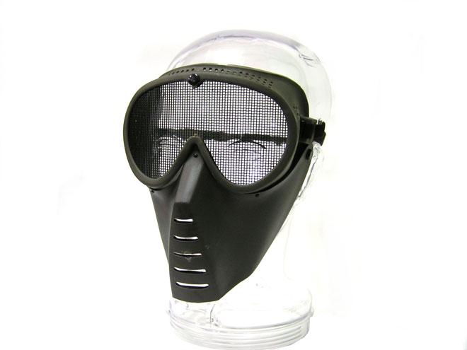 BB弾の被弾から口元を守るフェイスガードと通気性抜群のメッシュタイプの組合せ。BB弾はどこにはね返るか予測できません。自分だけではなく、BB弾が届くエリア内の全員がゴーグルを着用しましょう。BB弾が目に入ると、大きなケガをするおそれがあります。