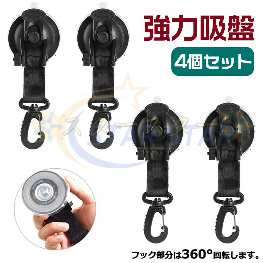 タープ 吸盤 黒 フック 強力 車 テント用 カーサイドタープ カーサイド サンシェード オーニング ペグ 荷物固定 タープ連結用 アウトドア用