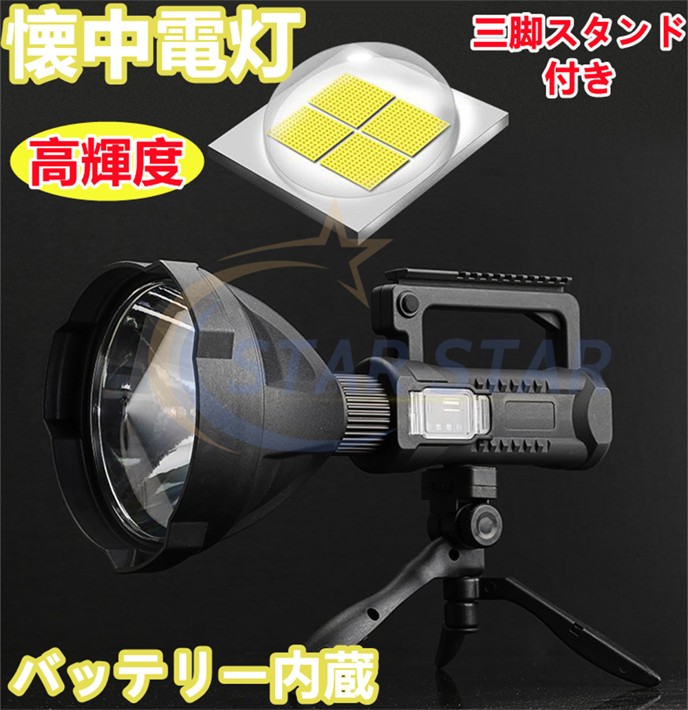 懐中電灯 LED 超高輝度 USB充電式 4つ調光モード IP65防水 三脚スタンド付き 8000mAhバッテリー内蔵 LED懐中電灯 モバイルバッテリー機能 サーチライト