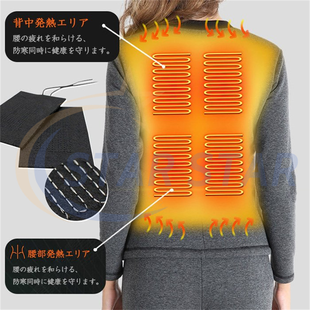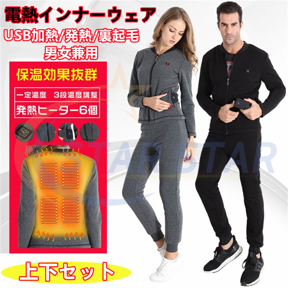 電熱インナー 電熱ウェア ヒータージャケット ヒーター付き 秋冬ジャケット 電熱服 裏起毛 防寒インナー バッテリー給電 電熱パンツ 長袖 防寒着 上下セット