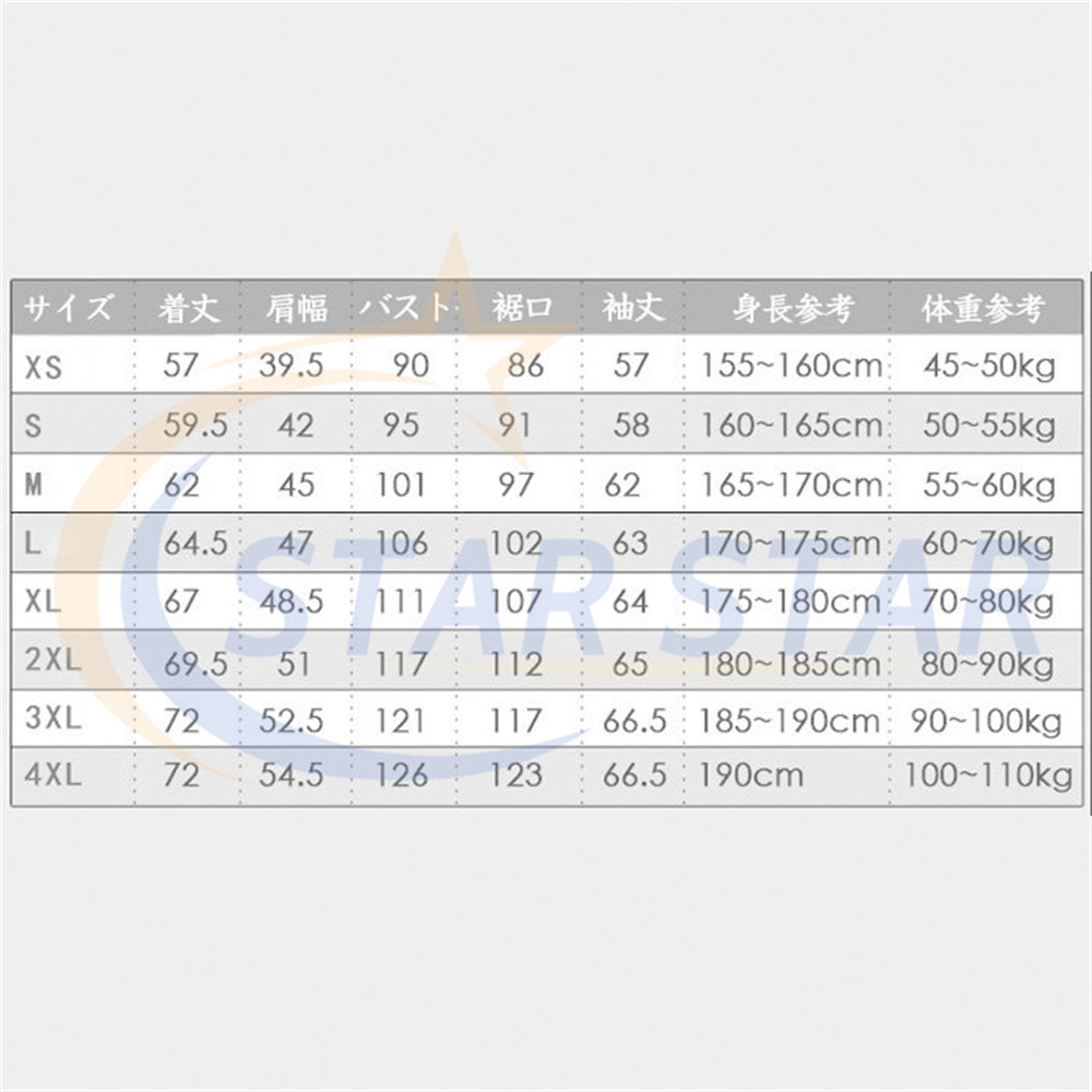サイズ:XS、S、M、L、XL、2XL、3XL、4XL