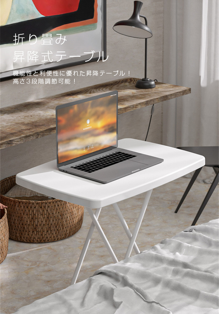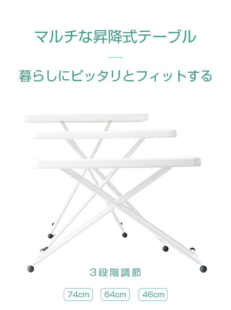 ●暮らしのスタイルに合わせて、テーブルの高さを簡単に変えられる折りたたみ式昇降テーブルです。