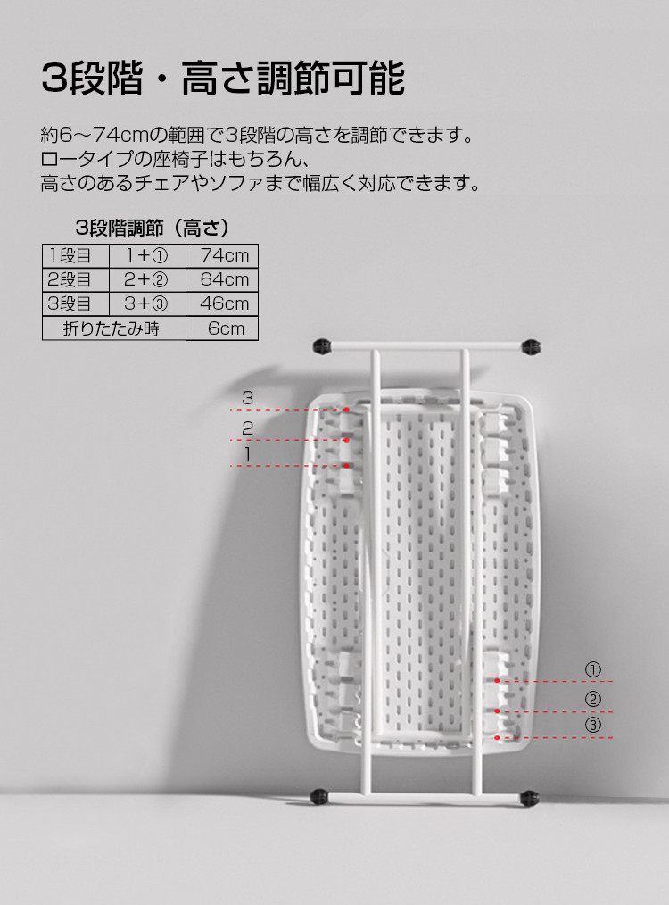 ●高さ3段階調節可能!ローテーブルからハイテーブルまで、様々なシーンで活躍してくれる!