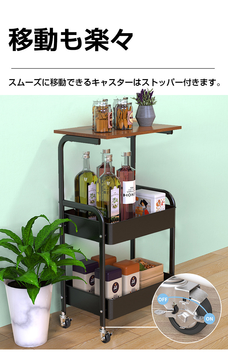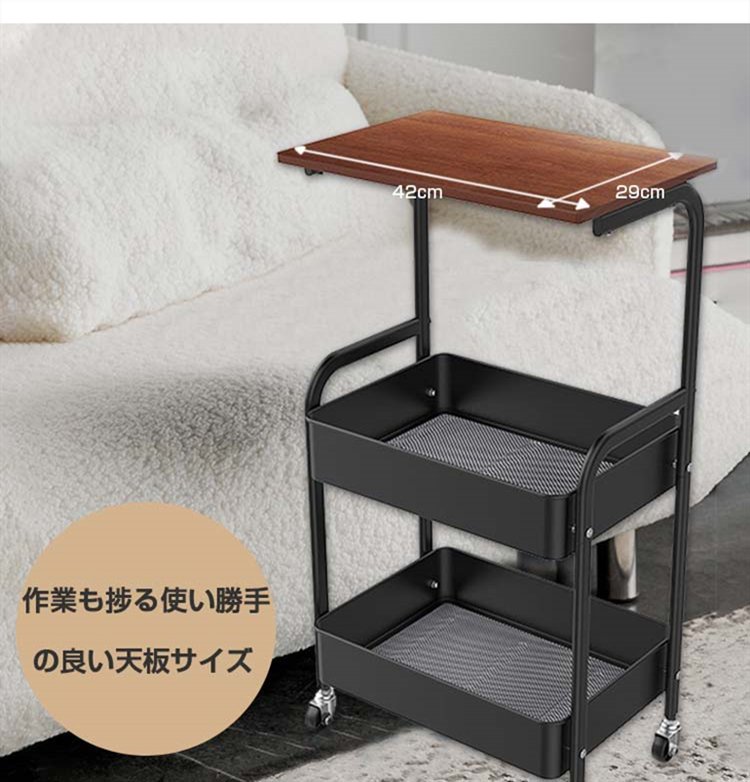 サイドテーブル おしゃれ サイドテーブルワゴン キャスター付き 3段 収納ワゴン ナイトテーブル 収納 小物 省スペース キッチンワゴン ベッド横