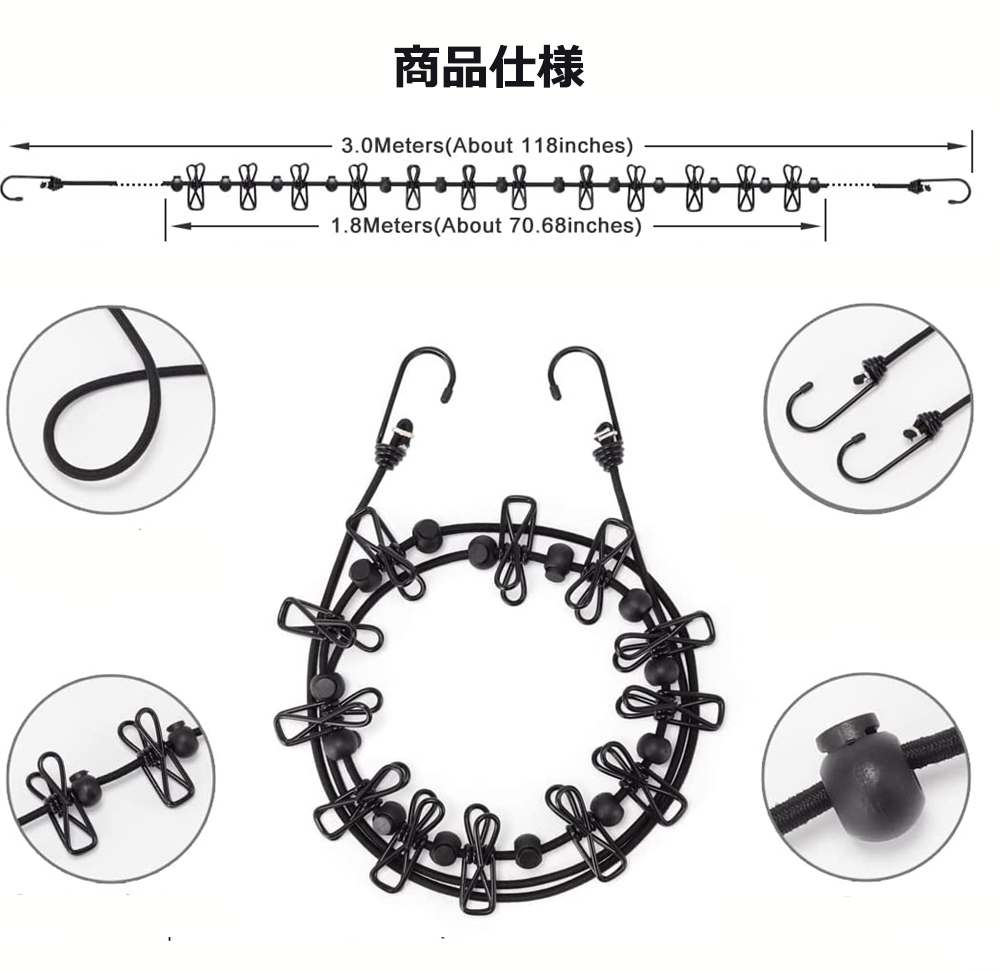 物干しロープ 物干し用ロープ ピンチがついて便利! 洗濯ピンチ付きロープ 300cm 便利 部屋干し 軽い 太陽光を有効利用 簡易設置 使い勝手 簡単収納 送料無料
