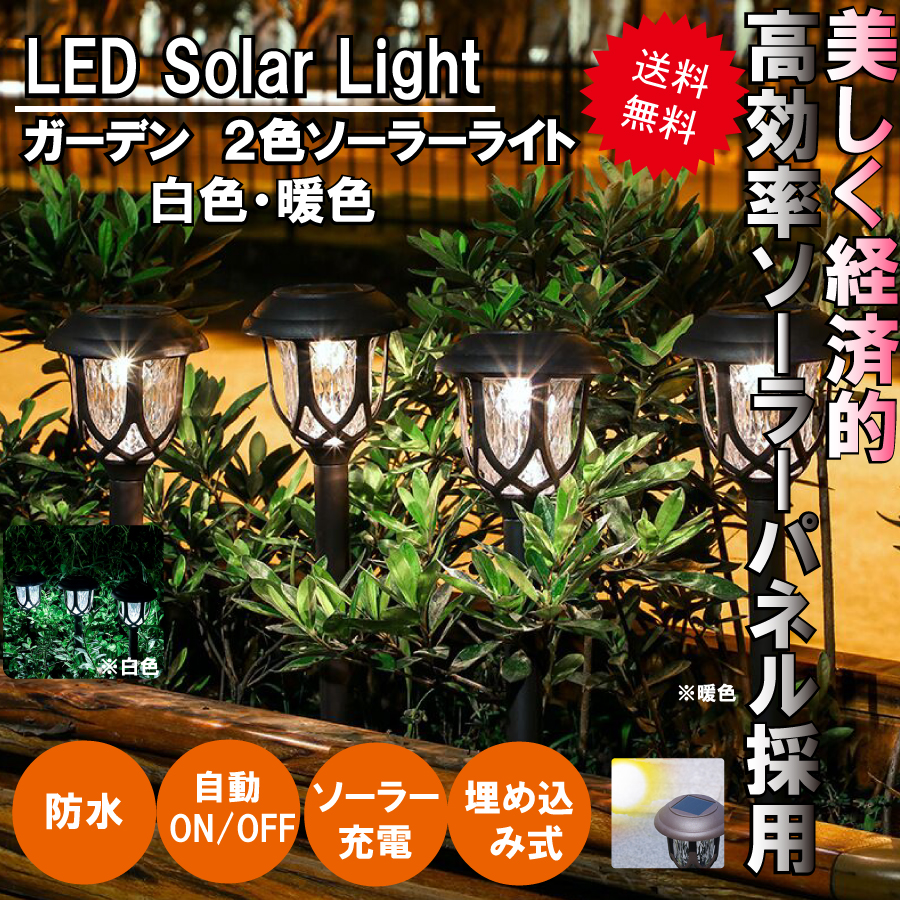 ガーデンライト LED ソーラー式 ソーラー充電 ソーラーパネル 防水 ライト 光 自動 屋外照明 庭 ガーデン 長寿命 電球色 昼白色 おしゃれ ポイント消化
