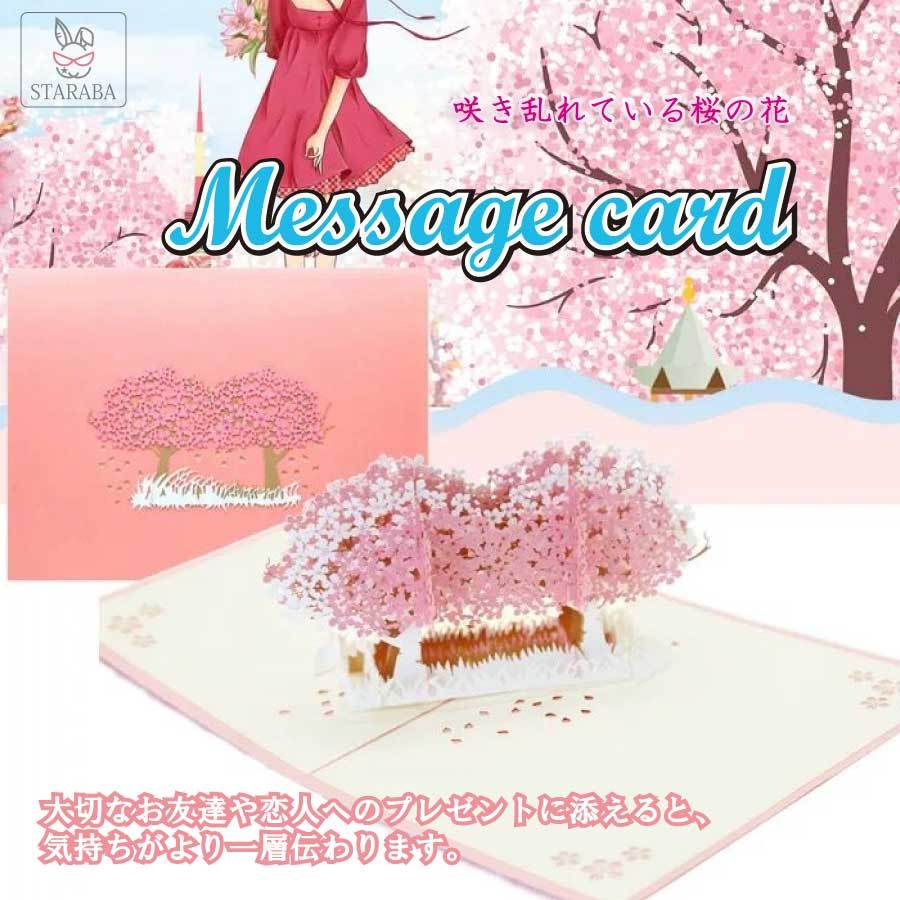 桜 グリーティングカード メッセージカード 誕生日カード 春 入学 チェリーブロッサム 3D 立体 ポップアップカード お祝い 誕生日 封筒付き メール便 送料無料