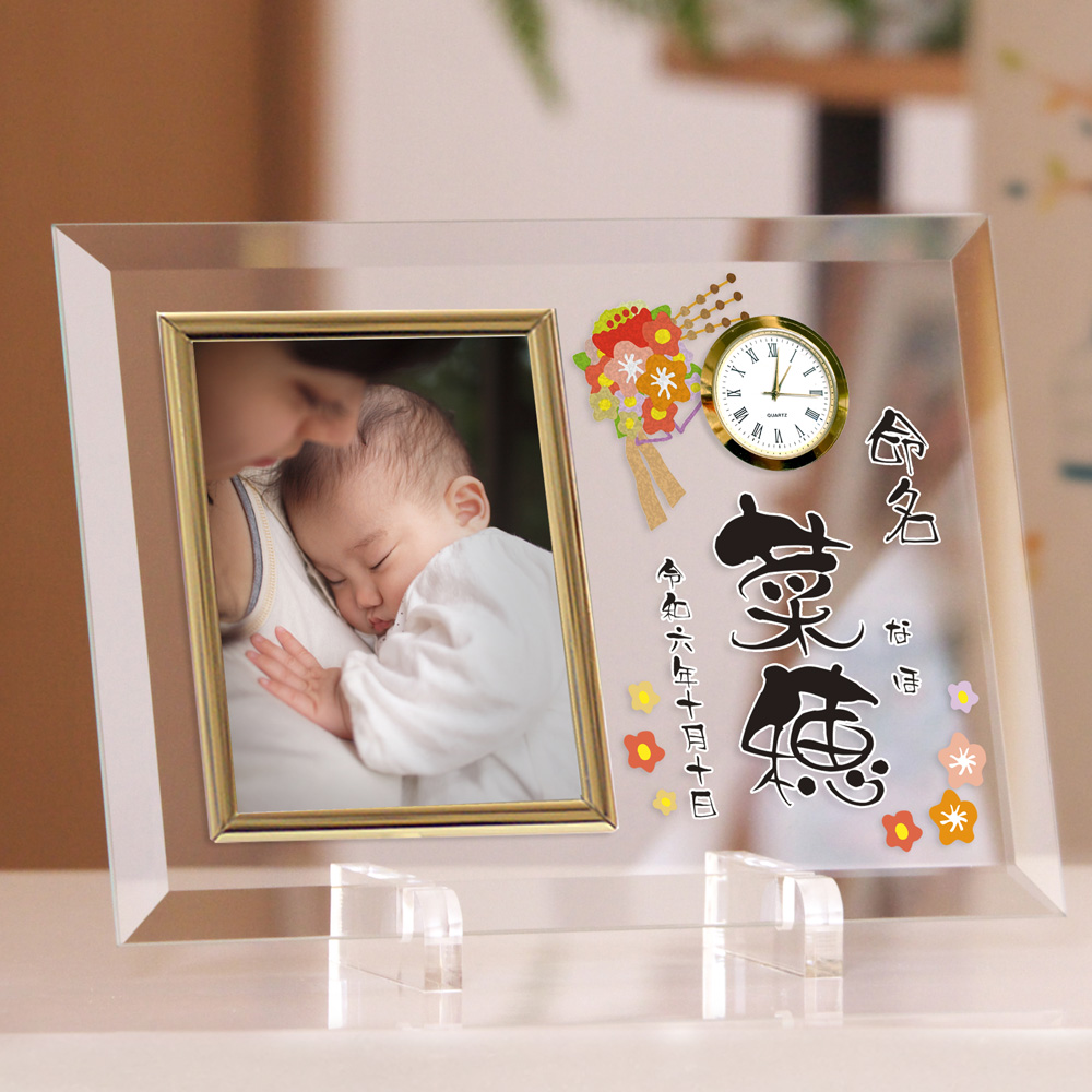 フォトフレーム付き置き時計 命名 オリジナル時計 名入れ 出産祝い 内祝い 赤ちゃん誕生 メモリアル