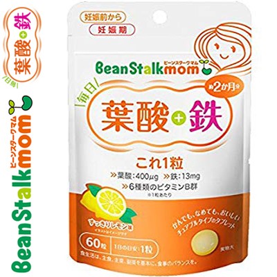 ・ビーンスタークマム 毎日葉酸+鉄これ1粒は、葉酸・鉄・6種のビタミンB群を独自のマスキング技術でおいしく1日1粒に凝縮しました。