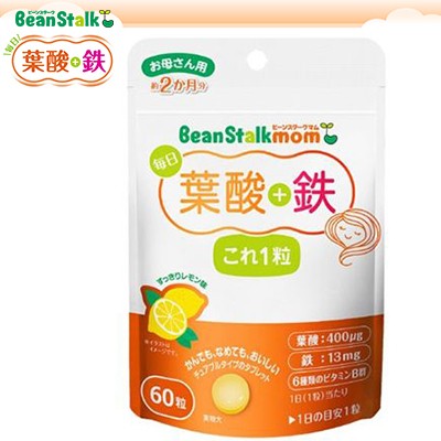 ・ビーンスタークマム 毎日葉酸+鉄これ1粒は、葉酸・鉄・6種のビタミンB群を独自のマスキング技術でおいしく1日1粒に凝縮しました。