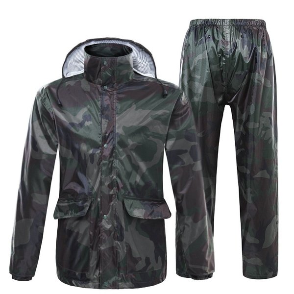 レインコート レインスーツ レインウェア 上下セット 小さいサイズ 迷彩 通湿性 雨合羽 雨具 大きいツバ 二重構造帽子