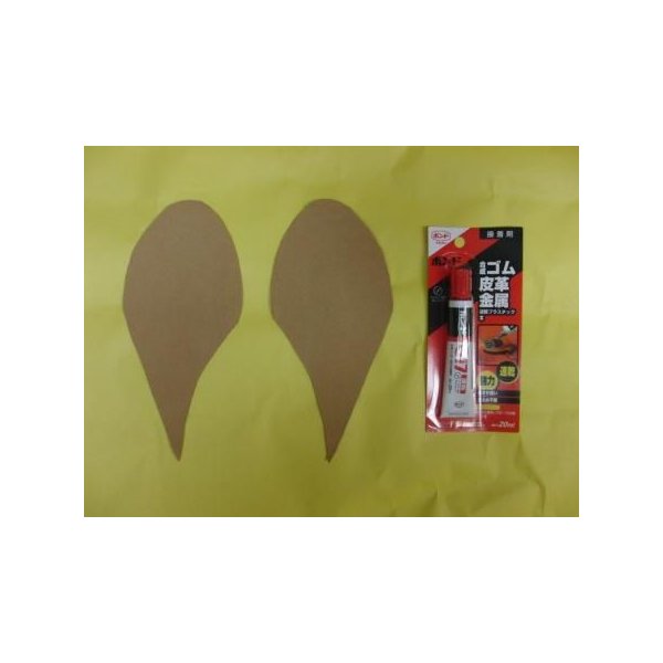 靴の裏面、汚れた部分に貼ります、汚れを落としてからボンドで貼ってください。乾いたら周りを切り落として完成です。