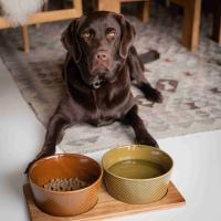 高品質のアカシア材で作られた新しい木製ドッグステーションは、ドッグボウルのサイズに合わせた窪みがついています。