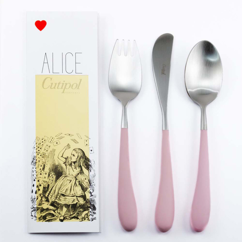 クチポール ALICEシリーズはブランド初の子供用カトラリーセット。5、6歳のお子様の使用することを想定。従来製品と同じく高品質なものであり、大人の方もカジュアルにご使用いただけます。