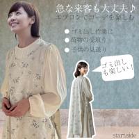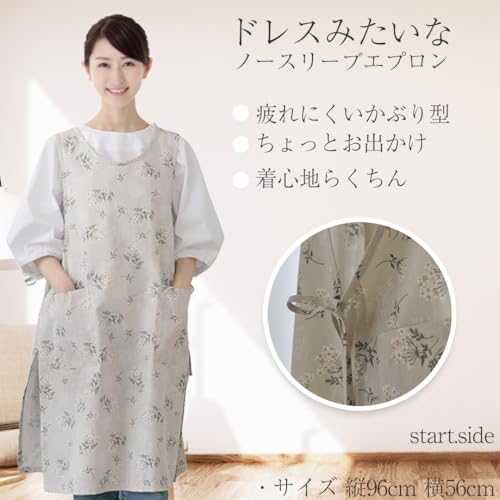 エプロン おしゃれ かぶるだけ かわいい ドレス H型 レディース ノースリーブ シンプル スカート 撥水 綿麻 ドレスエプロン 白花柄