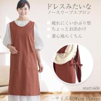 エプロン おしゃれ かぶるだけ かわいい ドレス H型 レディース ノースリーブ シンプル スカート 撥水 綿麻 ドレスエプロン 茶