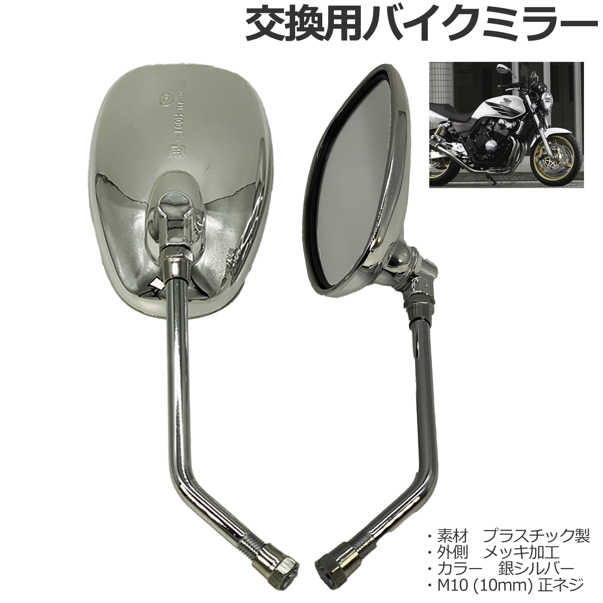 【互換品】 バイク ミラー オートバイリアミラー 交換 修理 左右セット 10mm CB400SF PCX 銀 シルバー メッキ 丸形