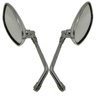 ショートタイプでメッキ仕上げのカスタム感のあるオーバルミラーとなります。 ミラーは大きめで視界も広く。 内側に折りたたんでミラーをセットすることで車幅も小さくすることも。