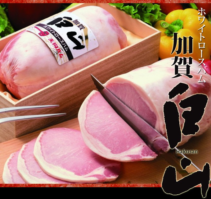 豚肉本来の美味しさを楽しめます。石川県の霊峰白山をイメージした白いハムは、