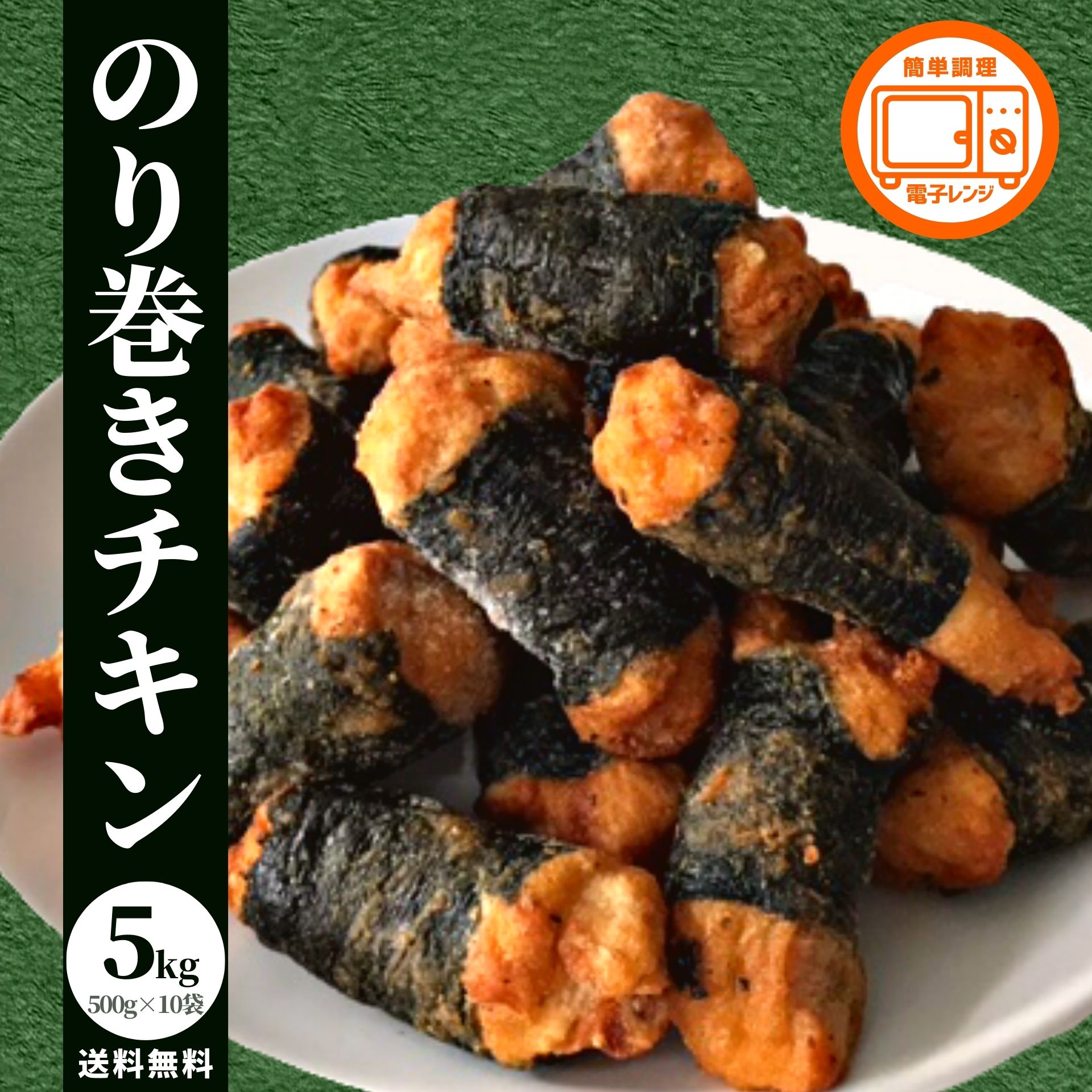 チキン のり巻き 5kg(500g×10P) 送料無料 冷凍食品 業務用 海苔 冷凍 鶏モモ肉 お買い得 大容量 チキン 鶏肉 若鶏 レンジ 唐揚げ 竜田揚げ まとめ買い 爆買