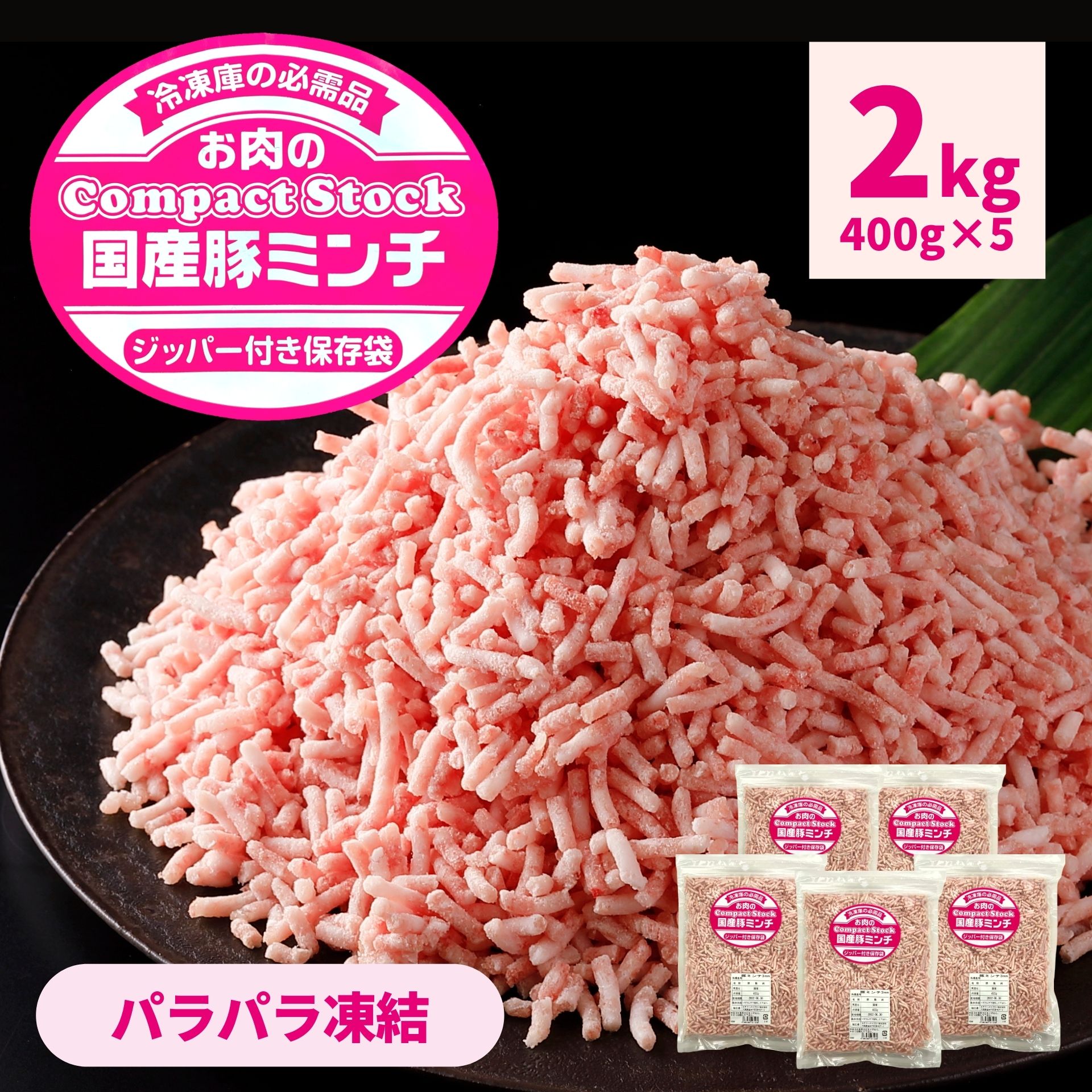 国産 豚ミンチ 2kg 400g ×5袋 送料無料 挽肉 パラパラ チャック ひき肉 豚肉 冷凍 冷凍商品 細挽 業務用 IQF 炒め物 挽き肉 ストック 大容量 爆買
