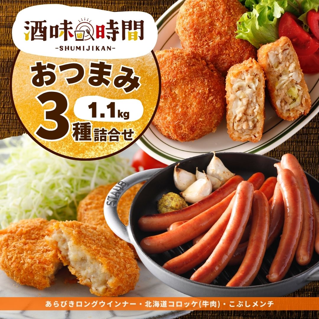 あらびきウインナー 牛肉コロッケ メンチカツ 福袋 3種 1.1kg 北海道コロッケ こぶしメンチカツ あらびきロングウインナー 送料無料 冷凍食品 業務用 爆買