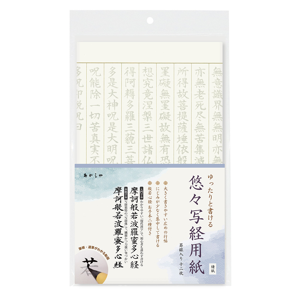 あかしや 悠々写経用紙 AO-105S 罫線入り なぞり書き 手本 般若心経 文字が大きめ 大きい 見やすい 現代漢字 常用漢字 写経体 楮紙 にじまない 初心者 入門 上級