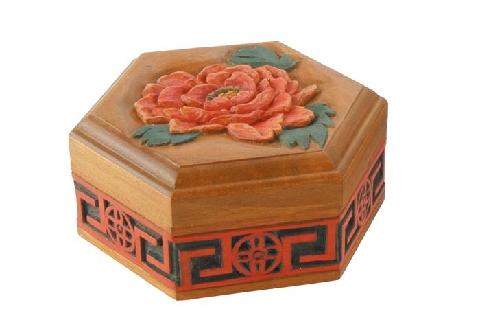 木彫六角小箱 30006 木製小物入れ 六角形 木箱 アクセサリーケース 収納ケース 彫刻 木彫 アート クラフト 手作り ハンドメイド 工作 DIY 美術用品 美術材料