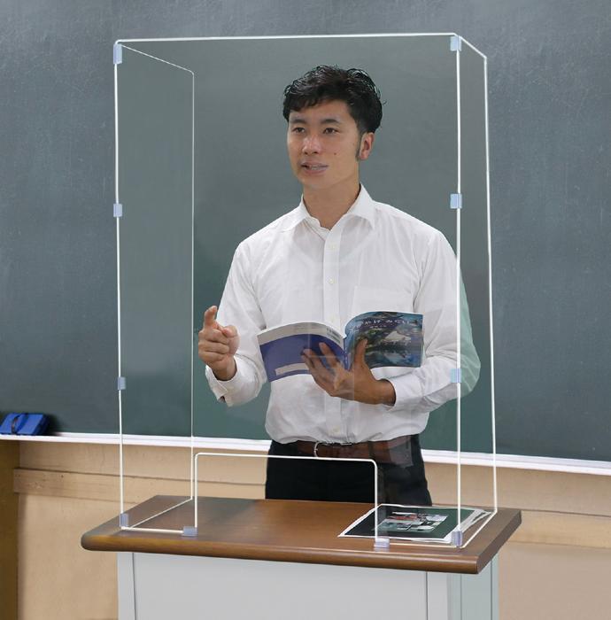スタンディング卓上パーテーション 900×650×350mm 51280 講演 授業 間仕切り 衝立 パーティション 自立式 透明 アクリル 飛沫防止